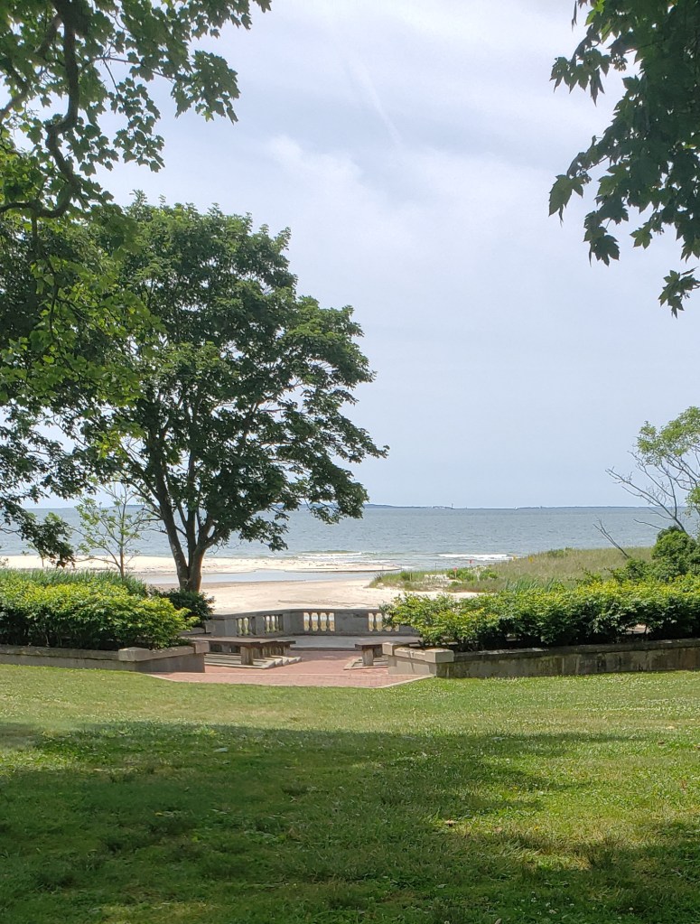 A little further down the path is another access point to the beach, so we kept walking past it. The path loops around, but can also take you to the mansion, former carriage house, a couple of large lawn areas, and a windmill, although the top of the windmill is long gone. The lawns would also be a good place to bring a blanket or chairs to hang out if you enjoy that. As for me, I like to keep moving!
